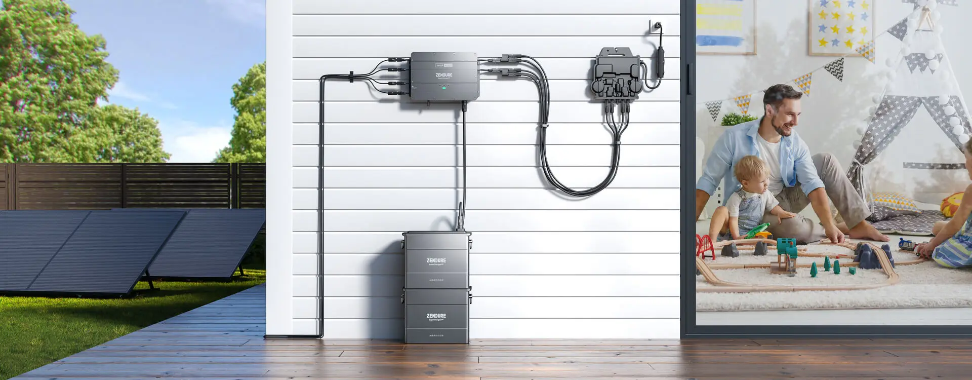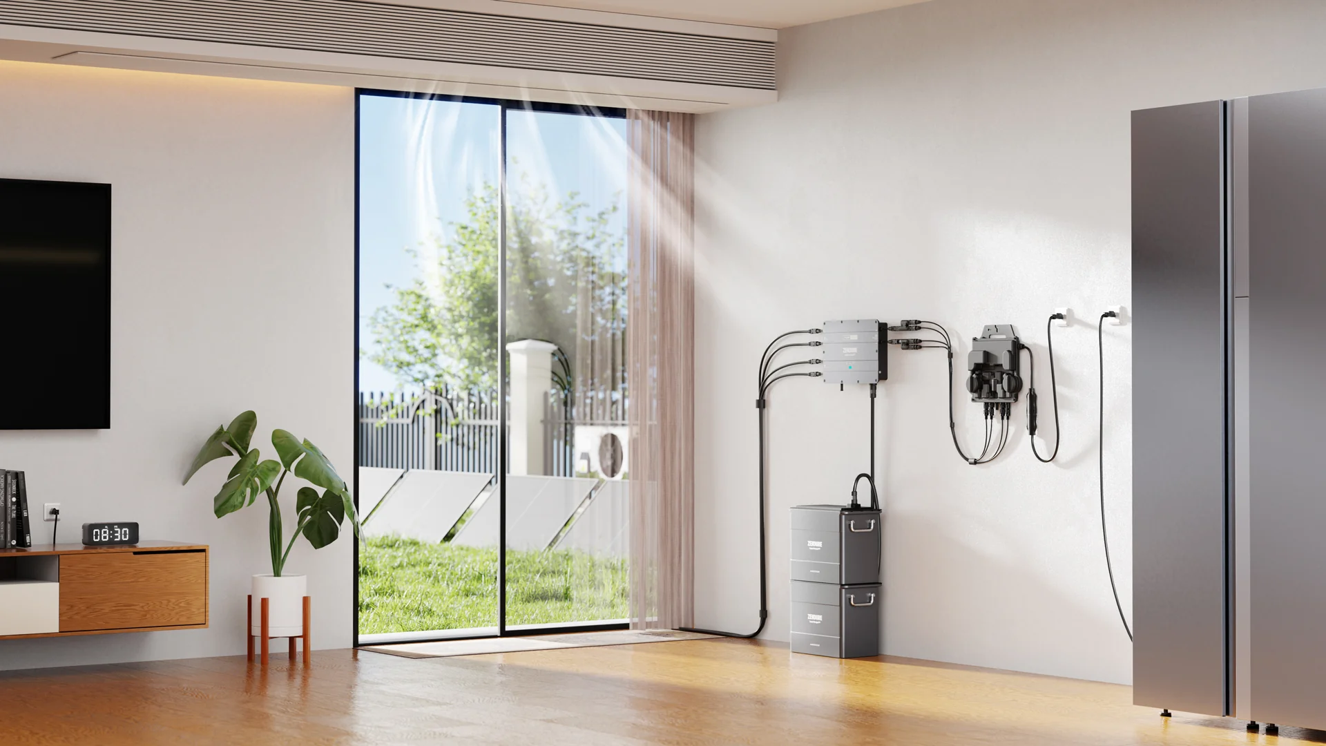 During the day, the electricity generated by the solar panels flows through the Hub 2000. A portion of this power is converted into alternating current (AC) by a microinverter to power your home appliances. The surplus energy is stored in batteries for use at night, helping to reduce energy costs.