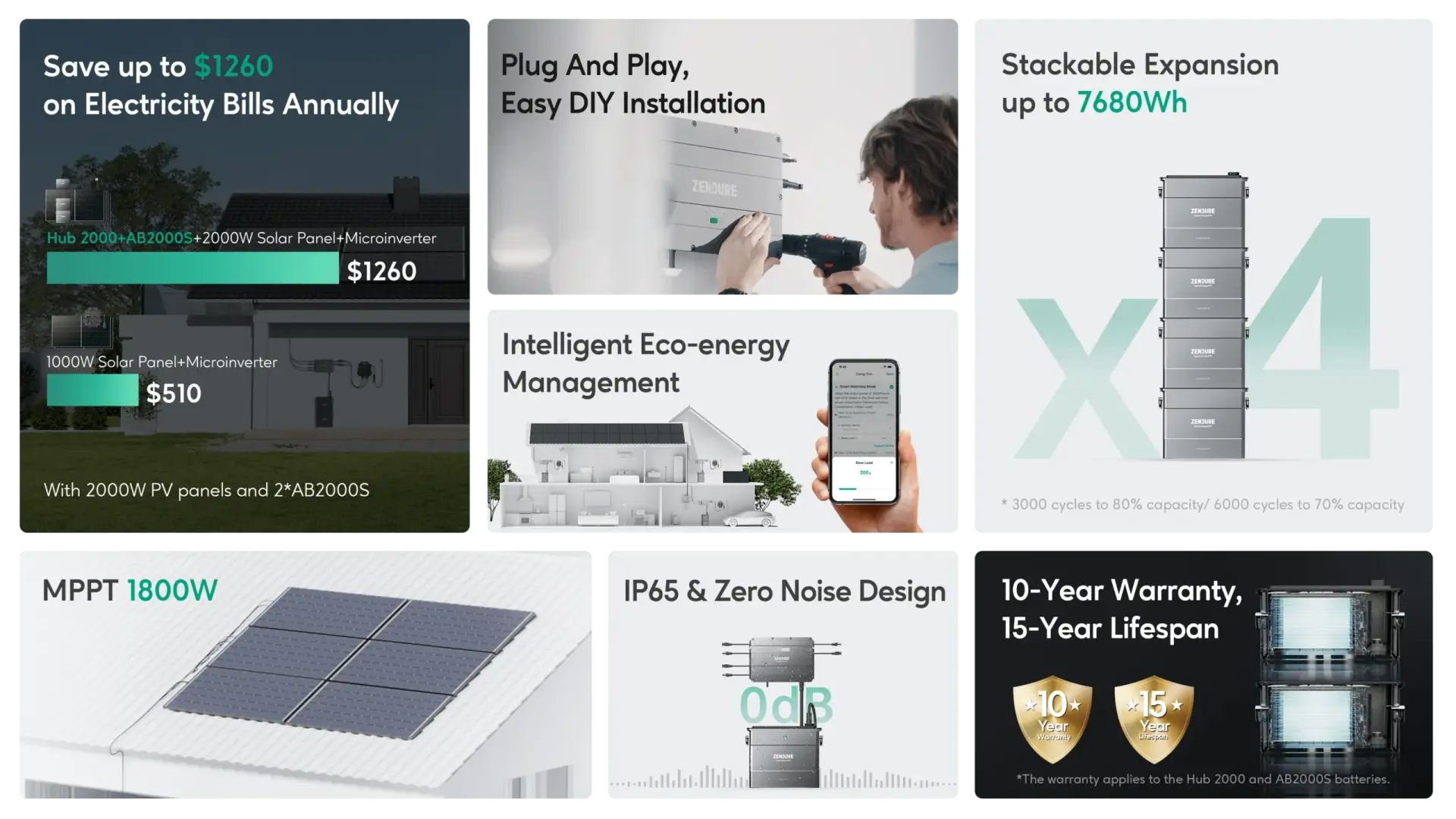 *The SolarFlow Kit with 2,000W solar panels generates up to 3,500 kWh per year, which can result in savings of up to $1,260 annually.