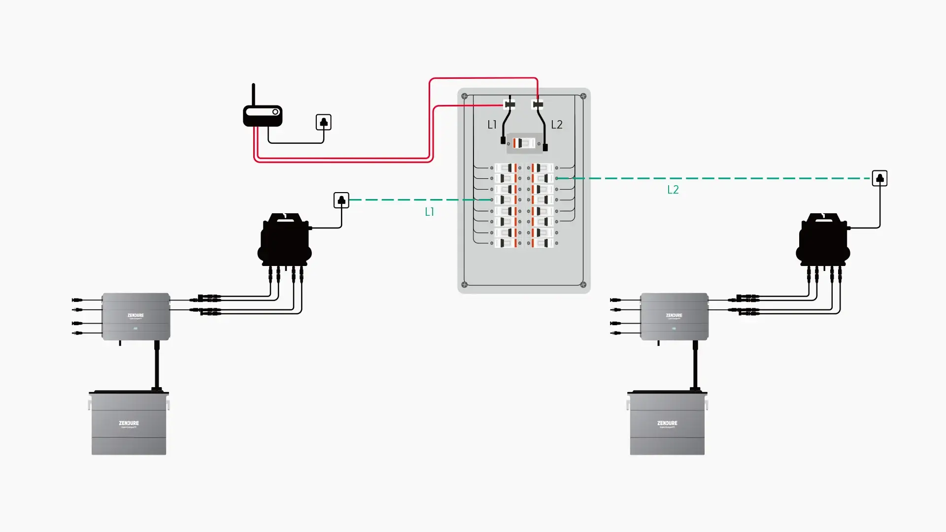 First, plug the two microinverters into outlets on two different phases. Next, separately attach the two clamps from the Smart Meter CT to the phases of the outlets where the microinverters are connected. Finally, enable Smart CT Mode. Once enabled, the SolarFlow Kit powers the home based on detected demand while providing second-level anti-backfeed protection.