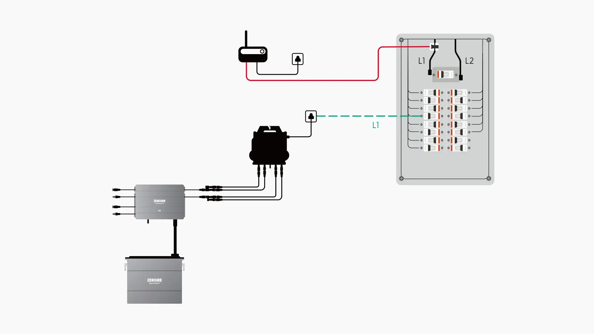 Attach the Smart Meter CT clamp to the phase of the outlet with the microinverter. Once Smart CT Mode is enabled, the SolarFlow Kit powers the home based on detected demand while providing second-level anti-backfeed protection.